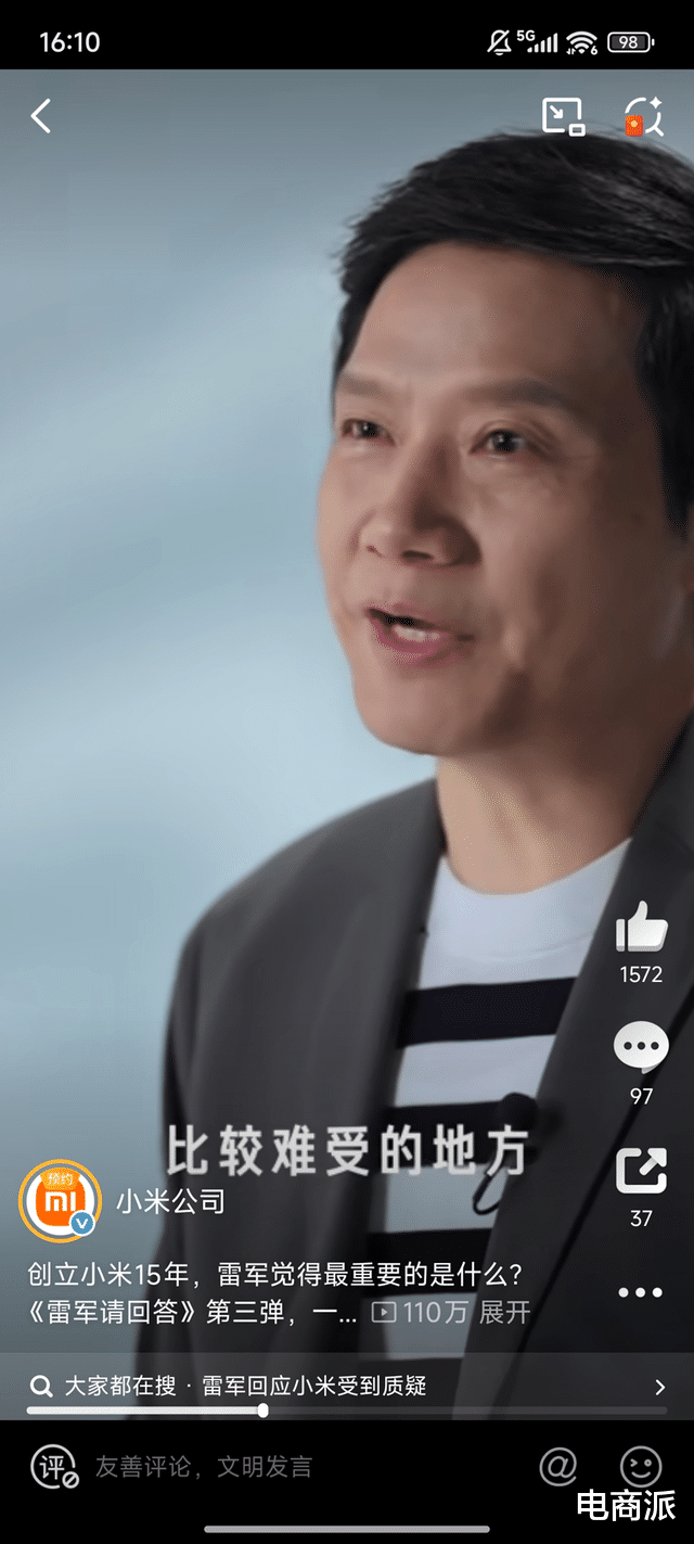 此外,雷军也在这条视频中回应了其他一些大家关心的问题。