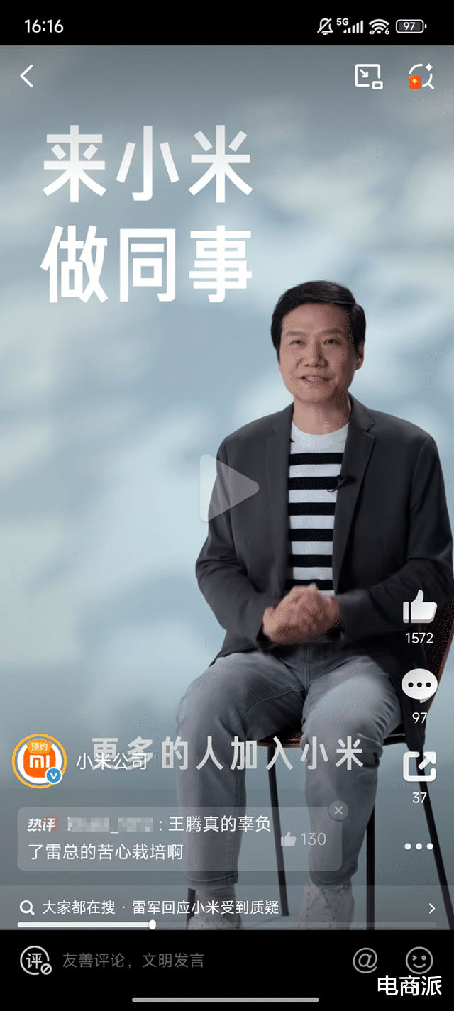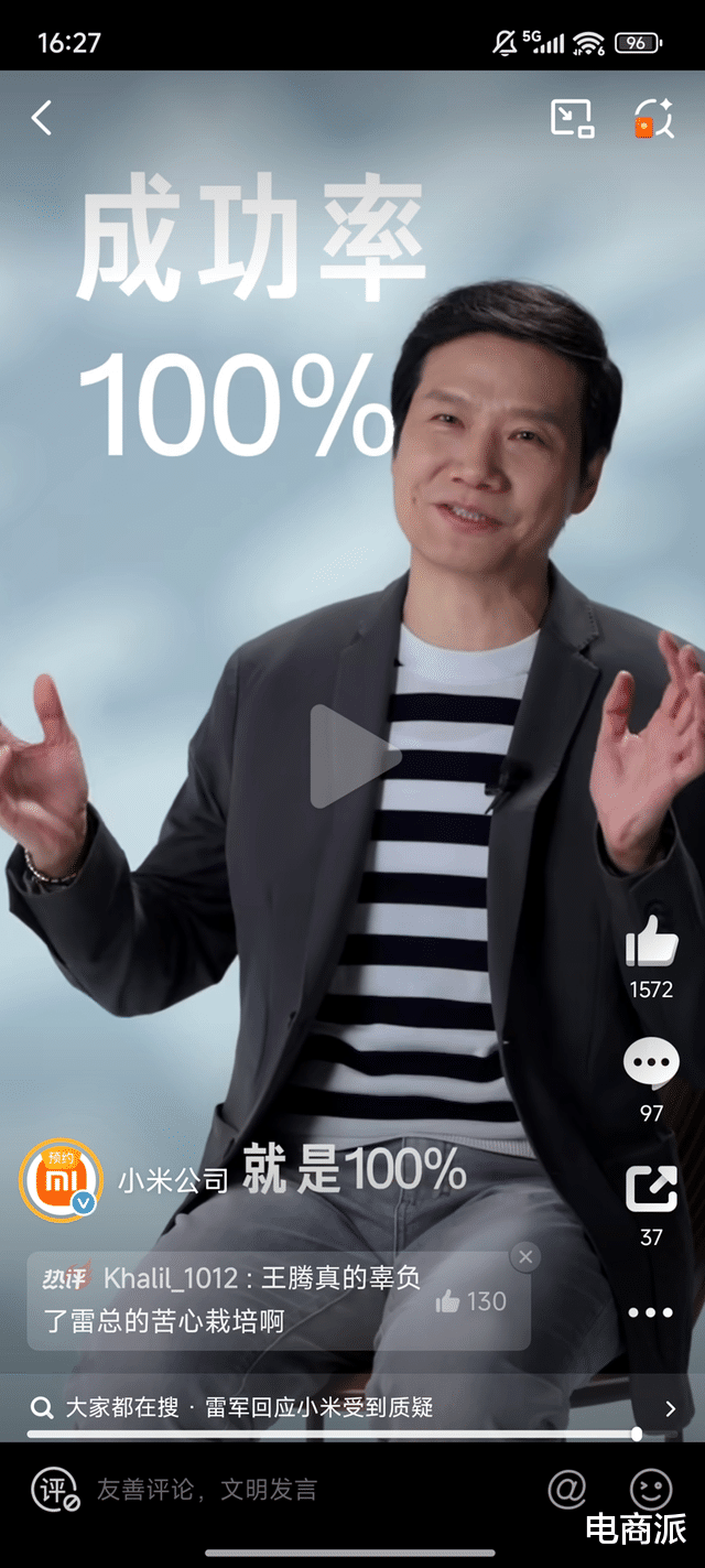 很有意思的是,在这条视频底下,有条热评称:“王腾真是辜负了雷总的苦心栽培啊。”